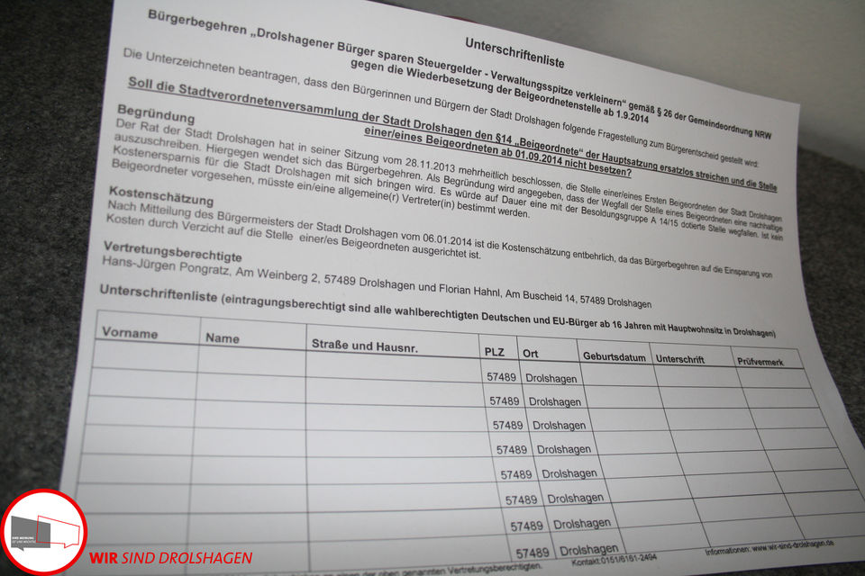 Auf den Unterschriftenlisten ist das heutige Datum, 10.03.2014, als Abgabedatum angegeben. Wir werden die Unterschriftenlisten erst am 20.03.2014 14:00 Uhr, im Rathaus einreichen. Bis dahin können alle Bürgerinnen und Bürger weiter fleißig unterschreiben und die Listen bei uns einreichen.